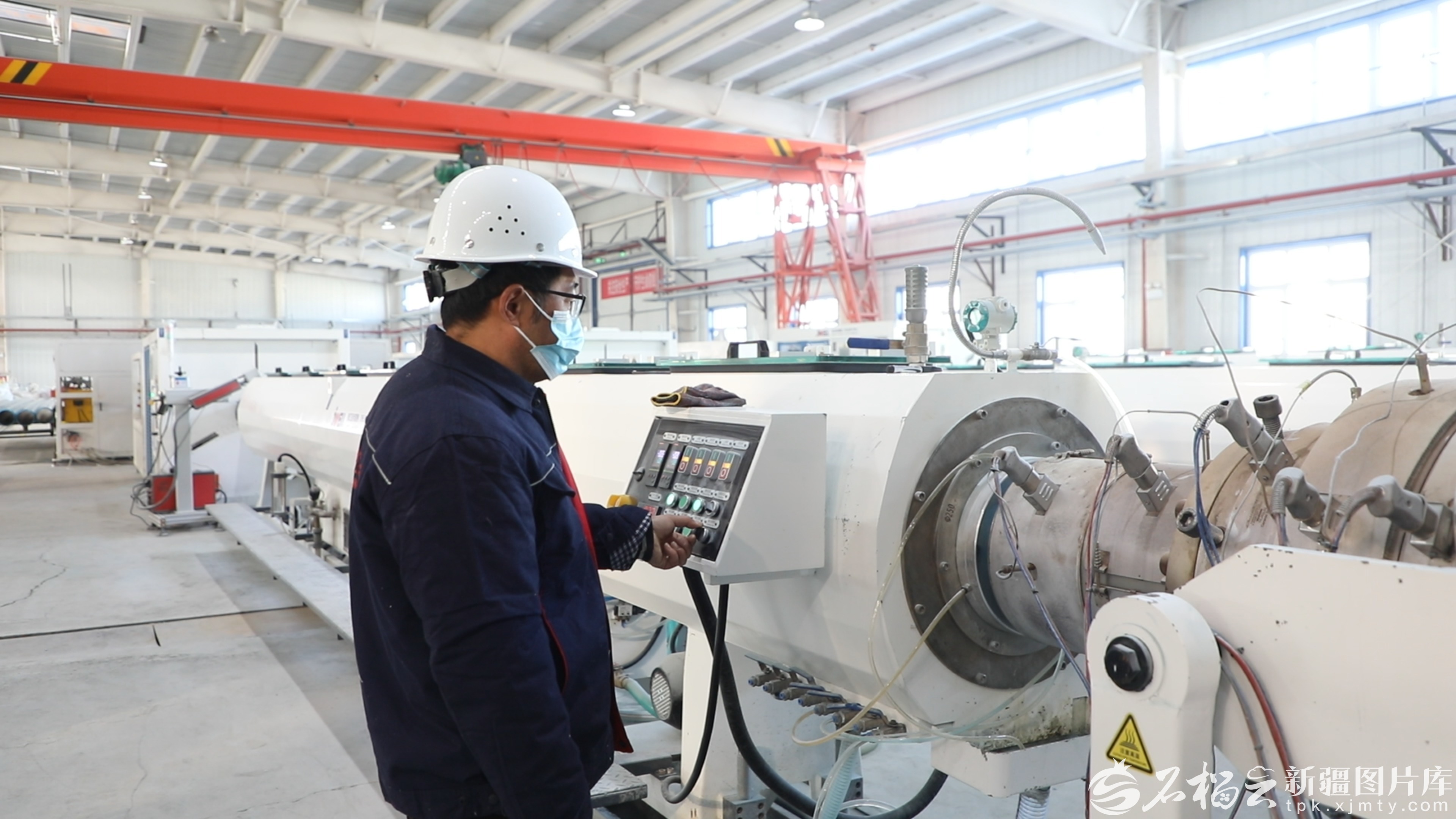 2月24日,明塑中达科技(新疆)有限公司车间,工人正在调试设备。刘冬萍 摄