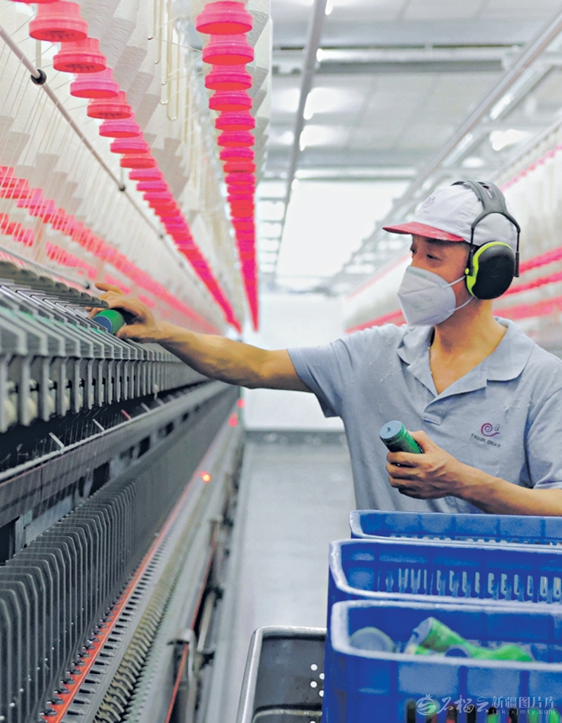 2月24日,位于昌吉市的一家纺织企业员工在车间作业。新春伊始,昌吉市各纺织企业开足马力忙生产、赶订单、拓销路,奋力冲刺首季“开门红”。 □梁宏涛摄
