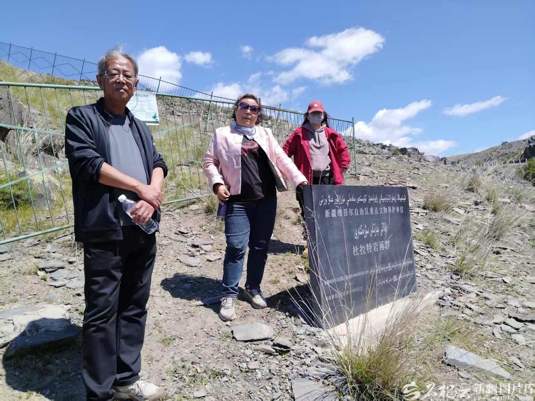甄岐国(中)在考察岩画。本人供图