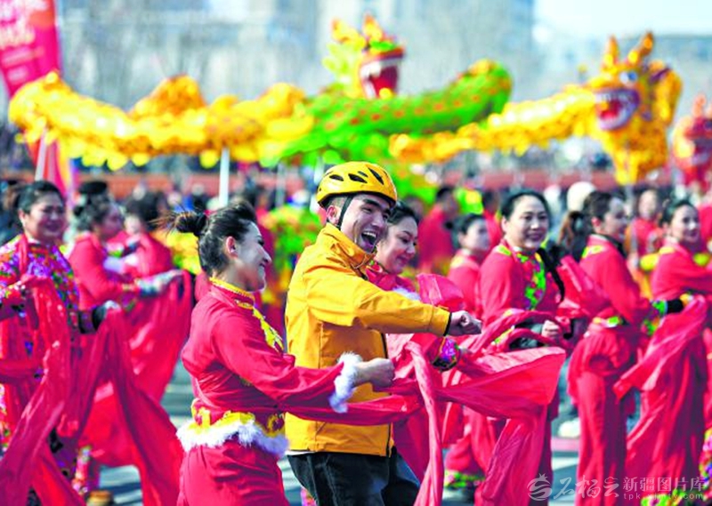 2月26日,演员在表演社火。当日,第二届“打起手鼓舞起龙”乌鲁木齐社火展演活动在乌鲁木齐文化中心启幕,18支社火表演队伍同台展演,奉献上了一场精彩的文化盛宴。天山网-新疆日报记者王禹摄