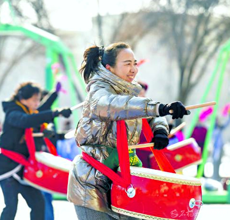 2月25日,昌吉市延安北路街道社火表演队的演员排练社火,迎接即将到来的元宵佳节。何龙摄