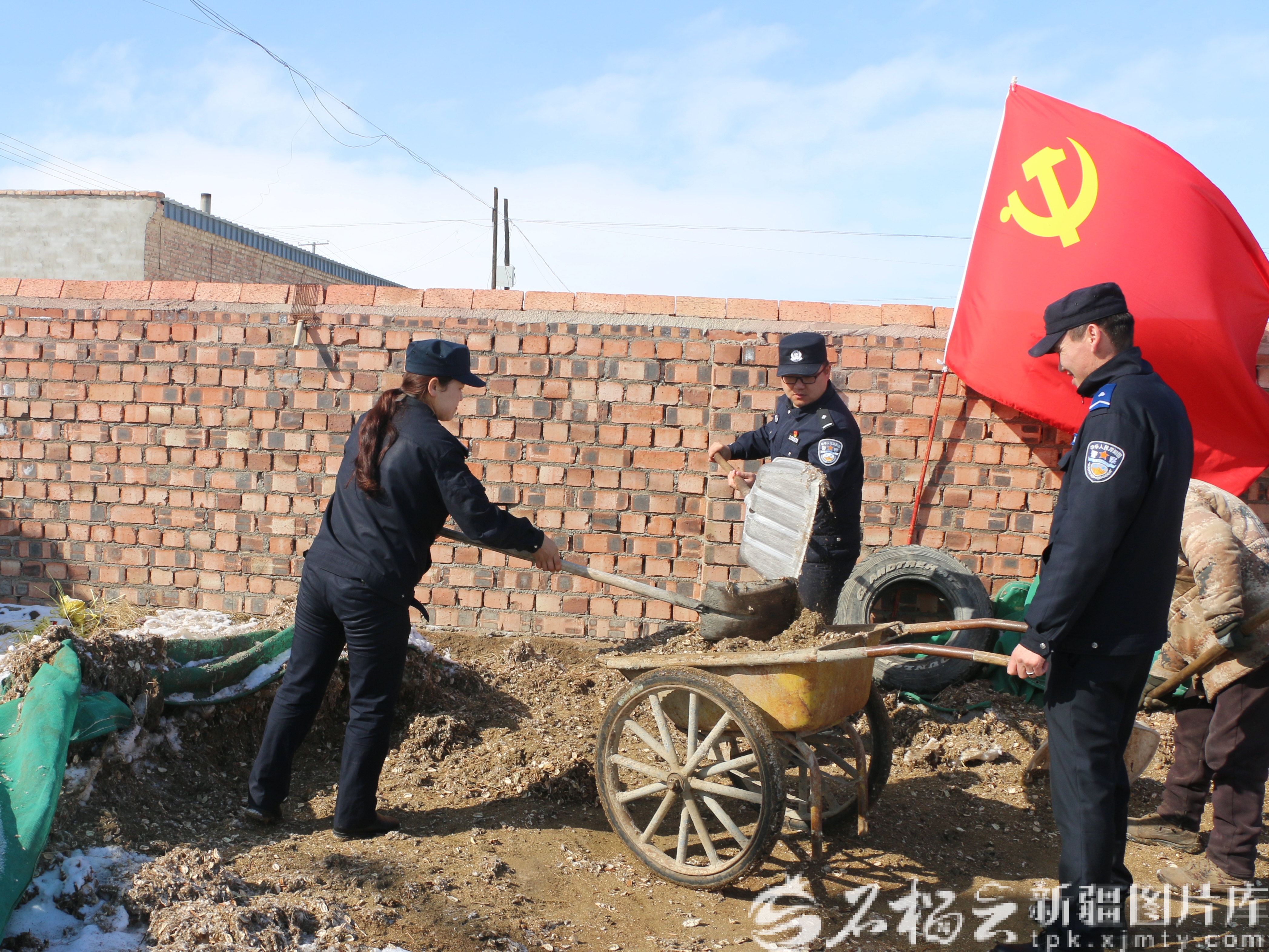 3月4日,和布克赛尔蒙古自治县公安局巴音敖瓦乡派出所党支部组织民辅警深入辖区,帮助孤寡老人清理圈舍。毕力格摄