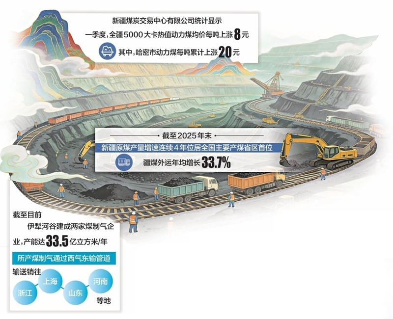 让我们先来看一组数据:截至2025年末,新疆原煤产量增速已连续4年居全国主要产煤省区首位,疆煤外运年均增长33.7%。这样的成绩单,靠的不是一时的市场波动,而是多年来在铁路通道建设、产能释放、智能化改造等方面的持续投入。一条条“能源动脉”的延伸,让新疆煤炭能够更高效地融入全国统一大市场。这种基础设施的前瞻性布局,为疆煤外运赢得了真正的主动权。