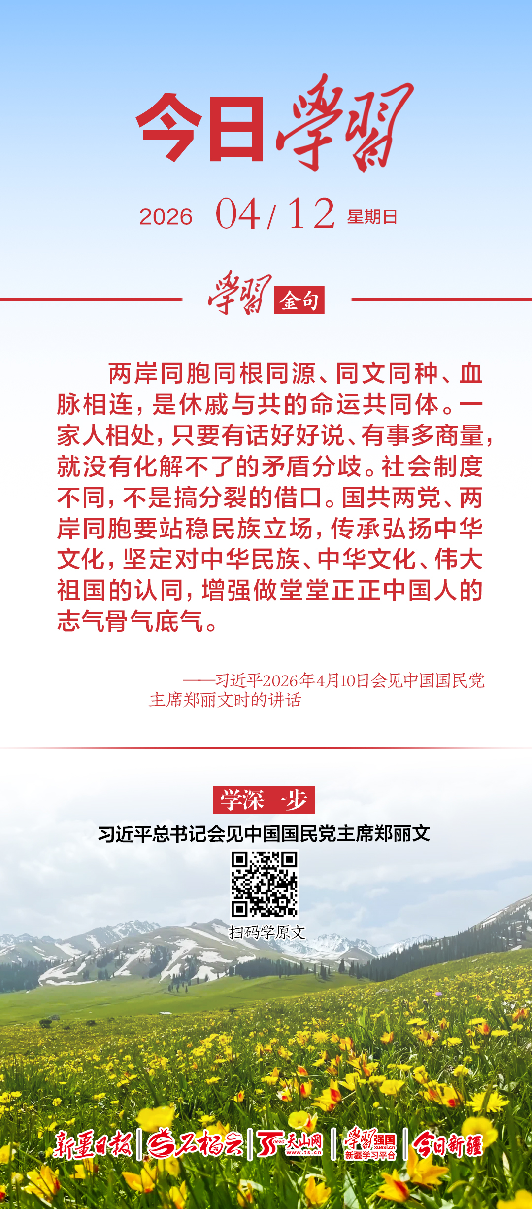 ——习近平2026年4月10日会见中国国民党主席郑丽文时的讲话