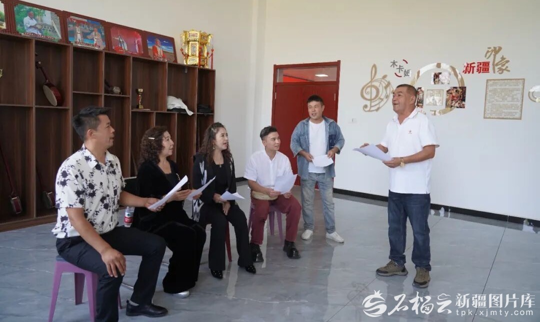 玉山·买合木提(右一)带领吐鲁番木卡姆爱好者演唱。买迪努尔摄