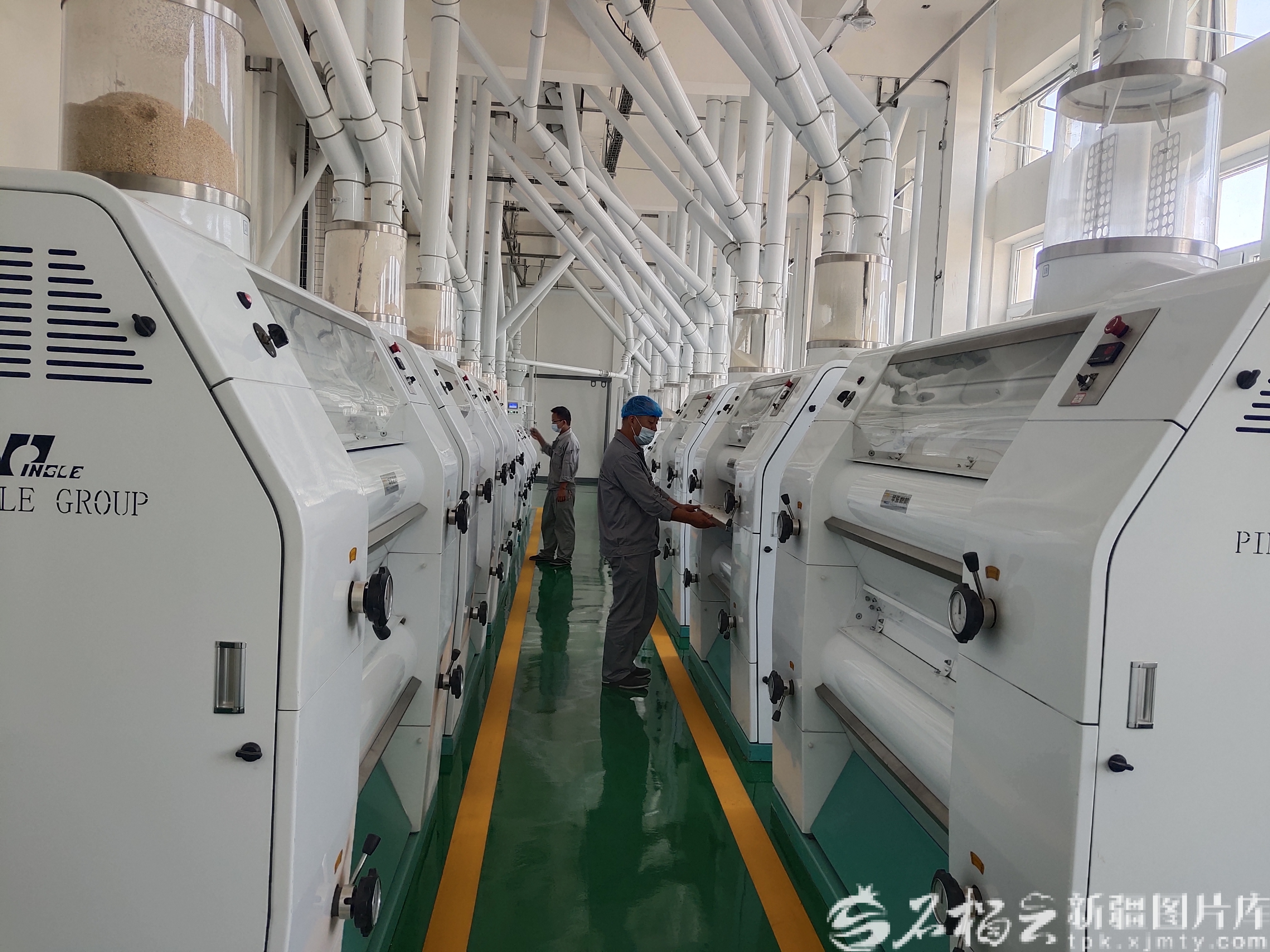 近年来,奇台县半截沟镇腰站子村实施“党总支+合作社+农户”三位一体集约经营模式,促进农村经济不断发展壮大。图为该村面粉加工厂生产车间。何龙摄