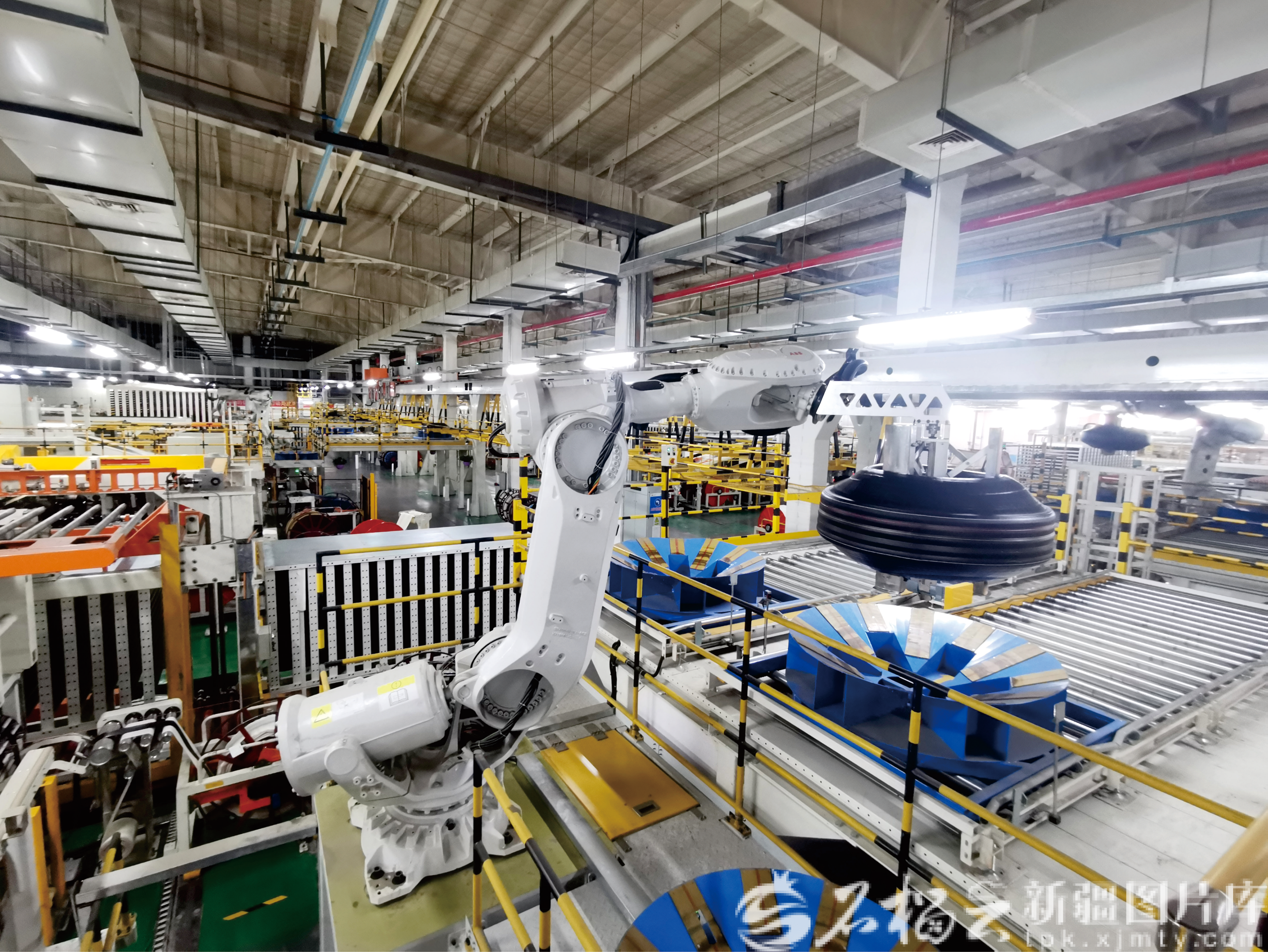 踏入双钱集团(新疆)昆仑轮胎有限公司的智能生产车间,眼前景象令人叹为观止。硫化工区和成型工区内,机器设备全力运转,一条条高性能全钢载重子午线轮胎全自动生产线正全速生产。现场,关节机器人与桁架机器人默契配合,无人搬运小车在预设轨道上平稳穿梭,高效连接各个工位。而在车间智能控制中心的大屏幕上,轮胎生产数据实时更新,一目了然。