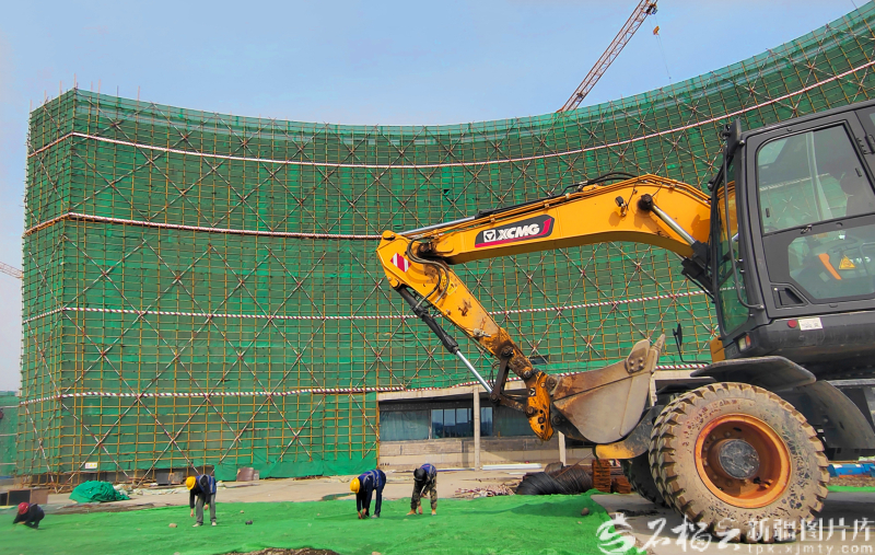 3月17日,新疆华世丹药业国际产业园内,工作人员在施工现场铺设防尘网。(资料图)