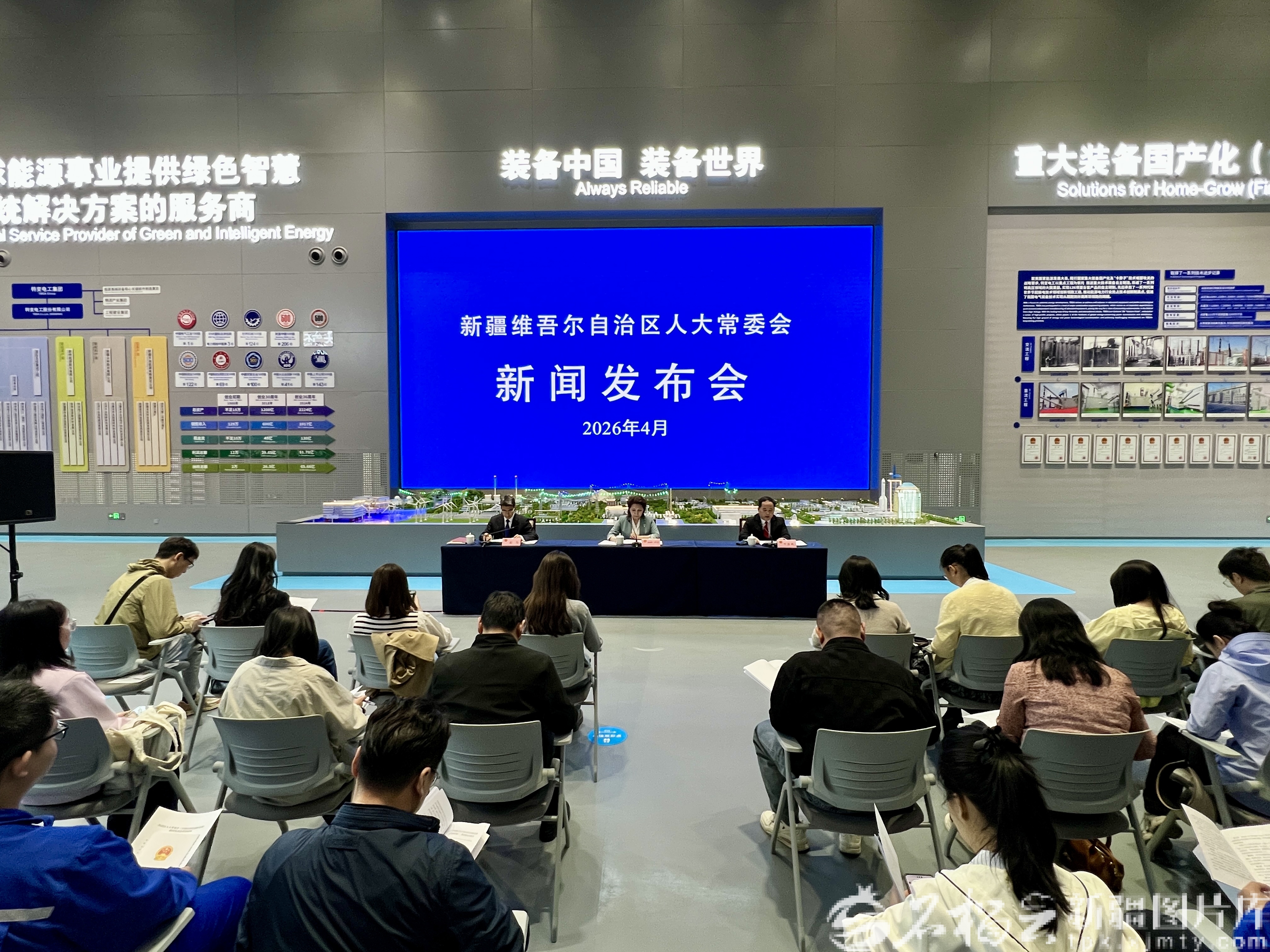 4月28日,自治区人大常委会在“特变电工重大装备创新成果展”主展馆召开新闻发布会,对自治区科技创新条例立法背景、制度设计、核心要义与实施要求等进行解读。天山网-新疆日报记者 仲兆丰摄
