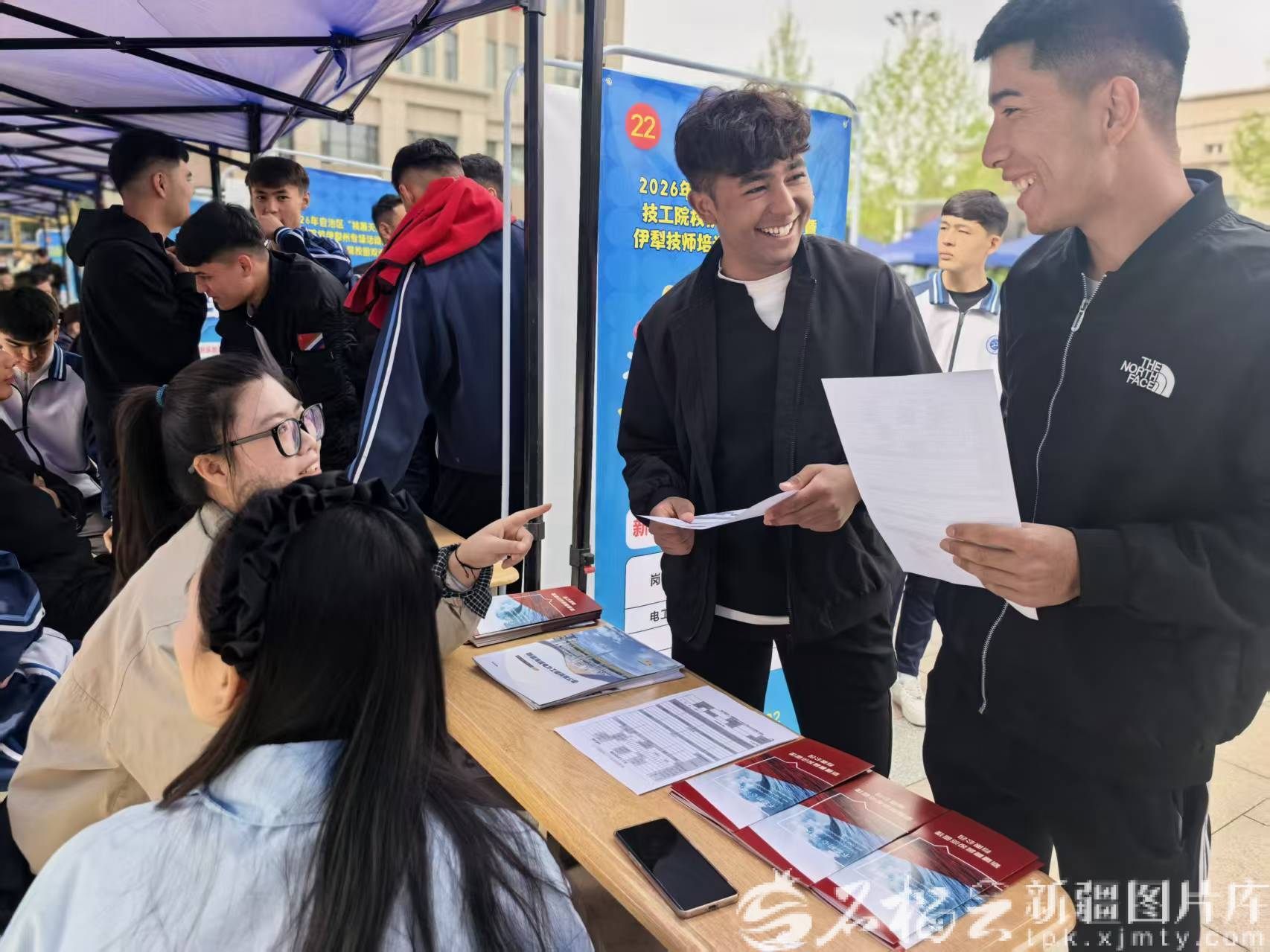 4月23日上午,2026年自治区“技展天山”技工院校伊犁州专场招聘活动在伊犁技师培训学院顺利举办。伊犁哈萨克自治州人社局供图