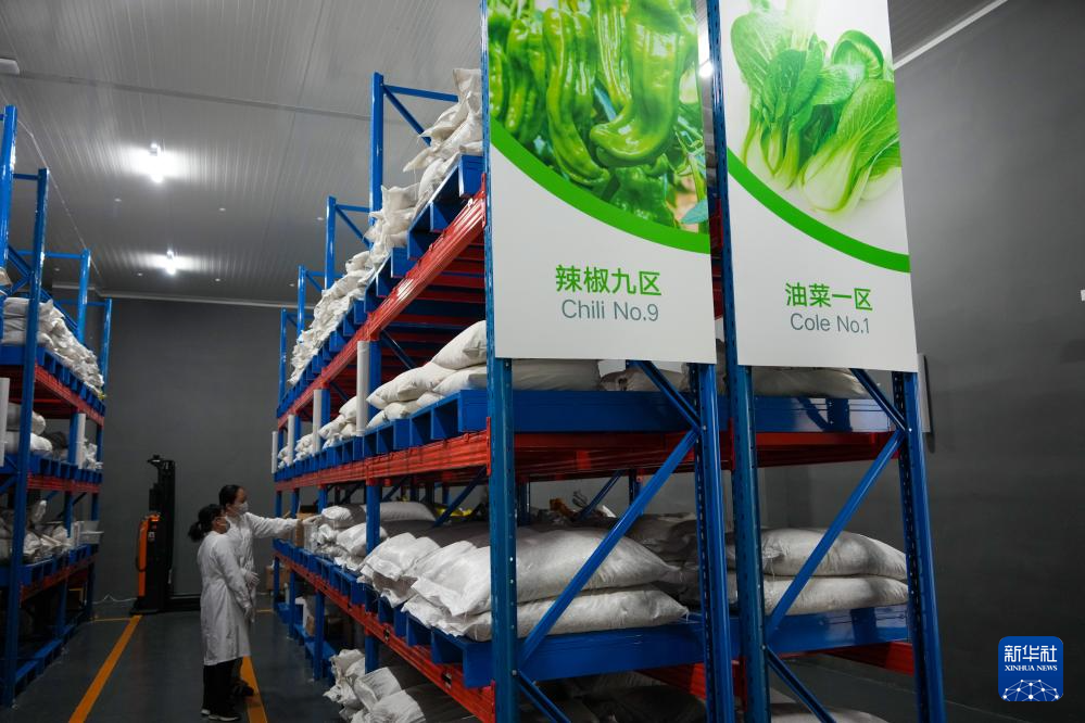 4月1日,寿光蔬菜种质资源库的工作人员在查看蔬菜种子。新华社记者 徐速绘 摄