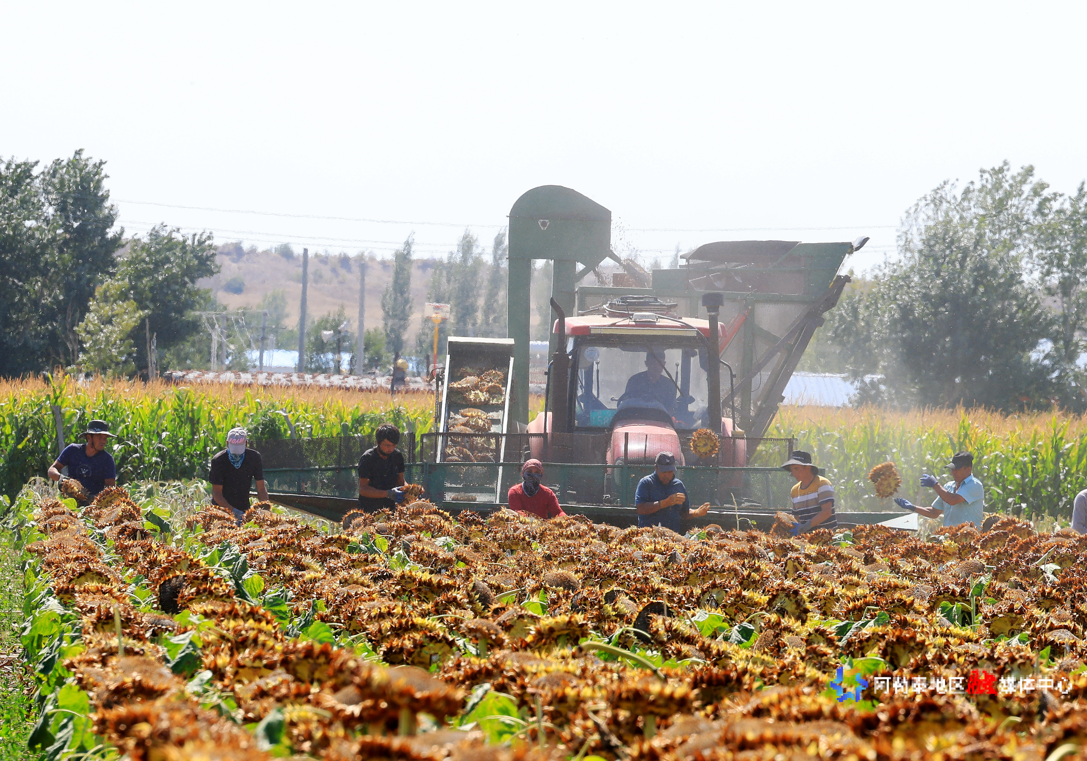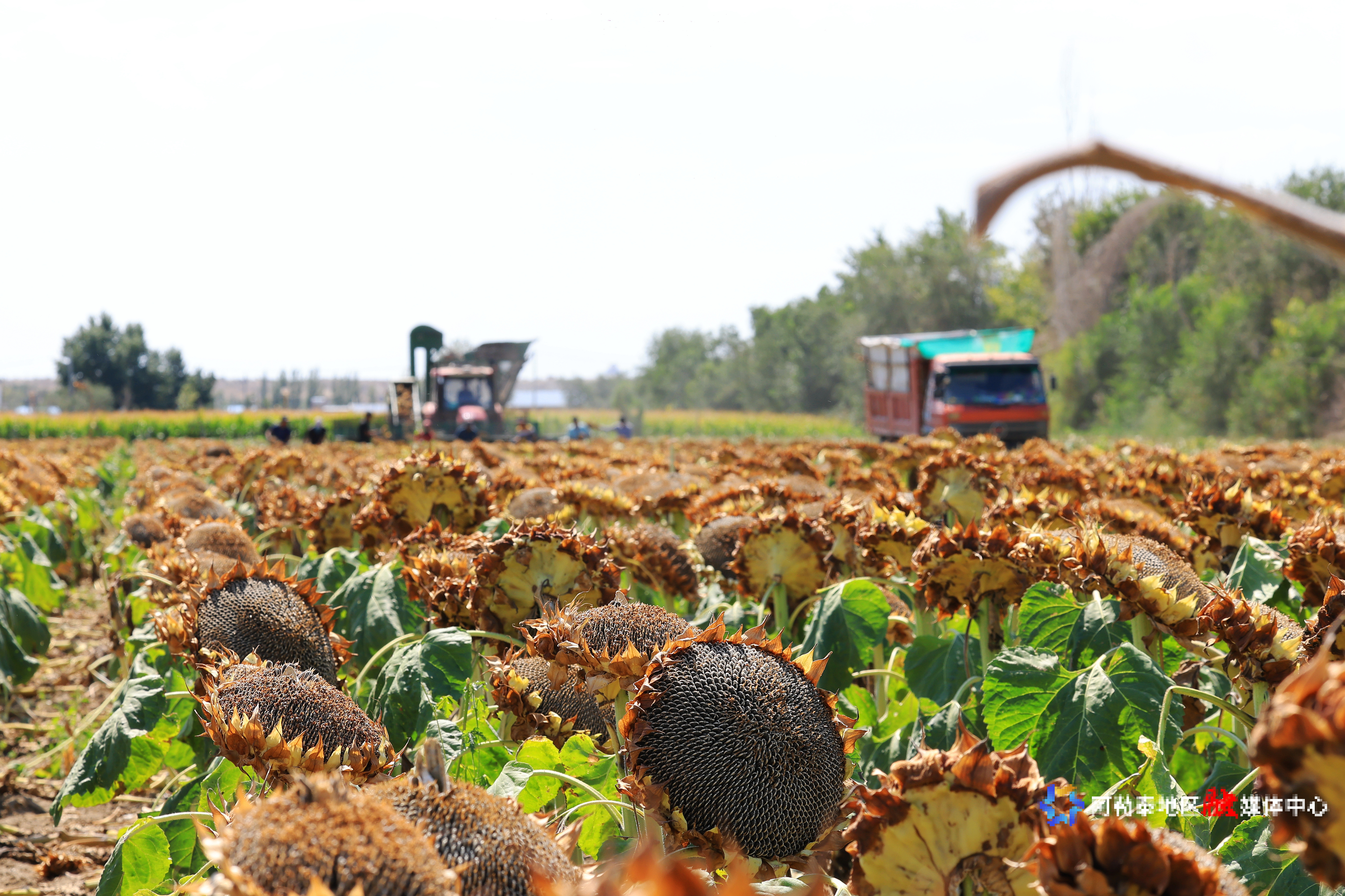 阿勒泰新闻网-阿勒泰地区融媒体中心(记者 阿尔达克·拜斯汗 摄)眼下,福海县50余万亩食葵喜获丰收,各乡镇组织大型机械及时采收、分拣,“抢鲜”供应市场。