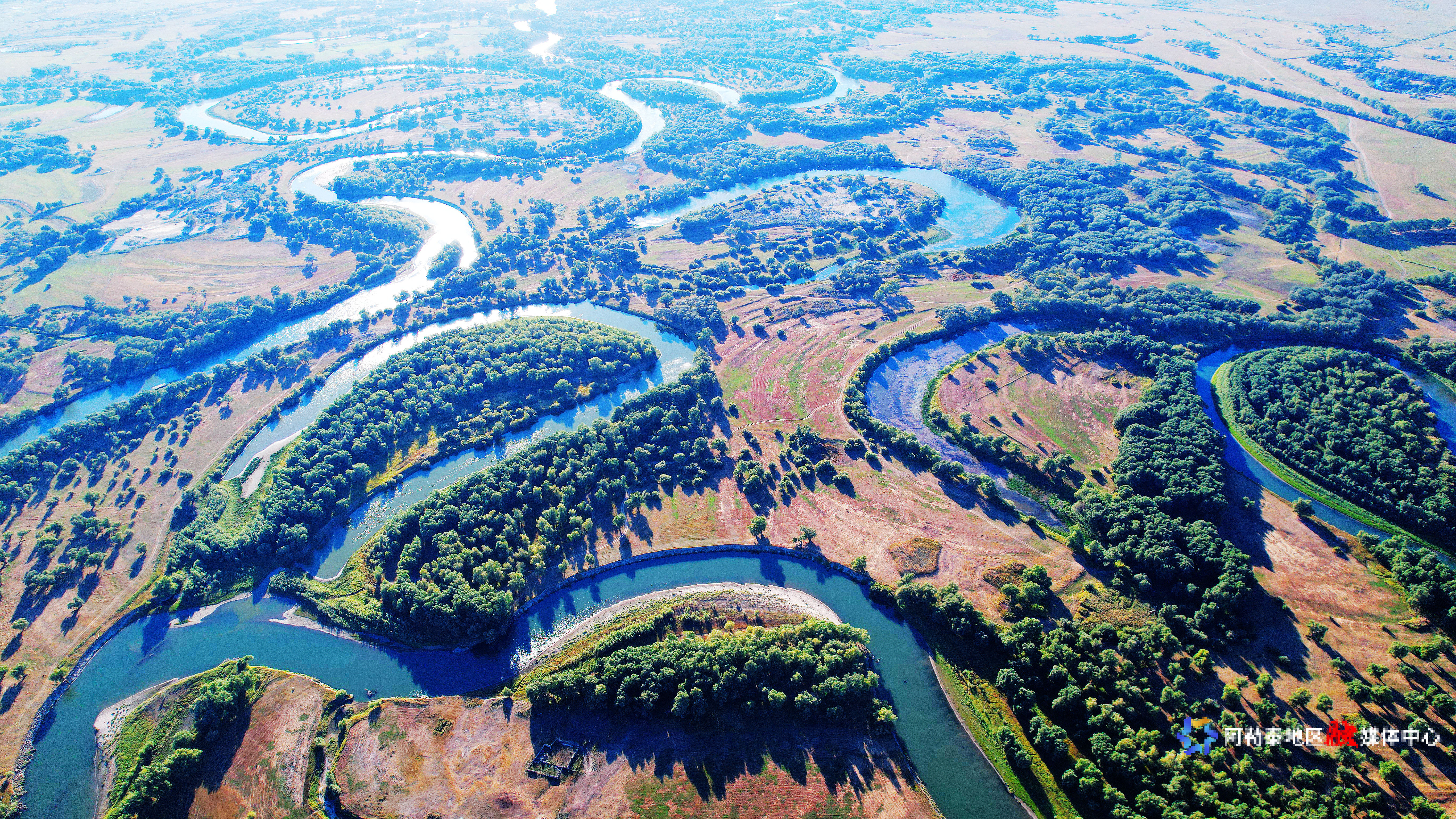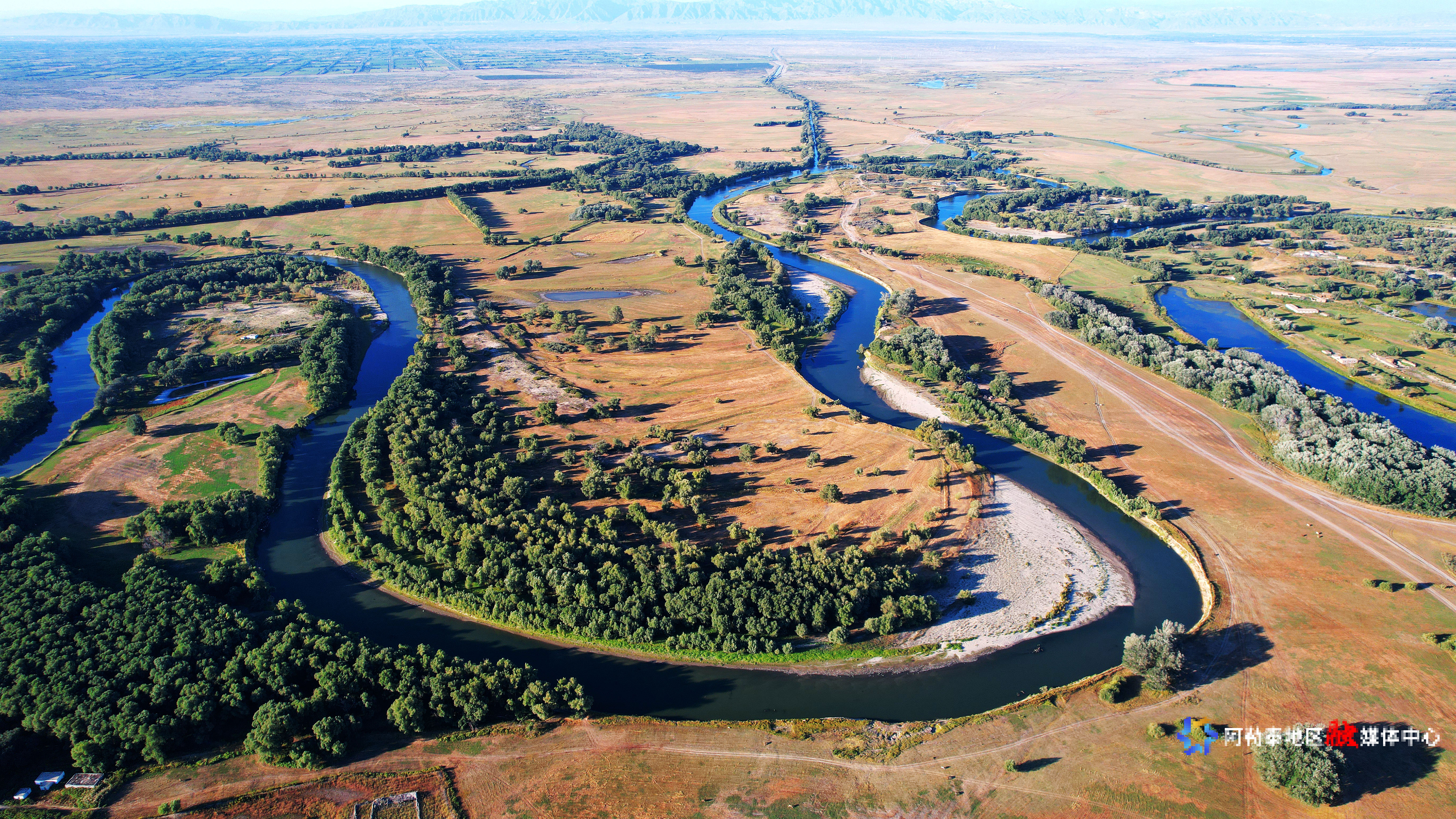 8月29日,俯瞰新疆阿勒泰科克苏湿地国家级自然保护区美景。记者 阿尔达克·拜斯汗 摄