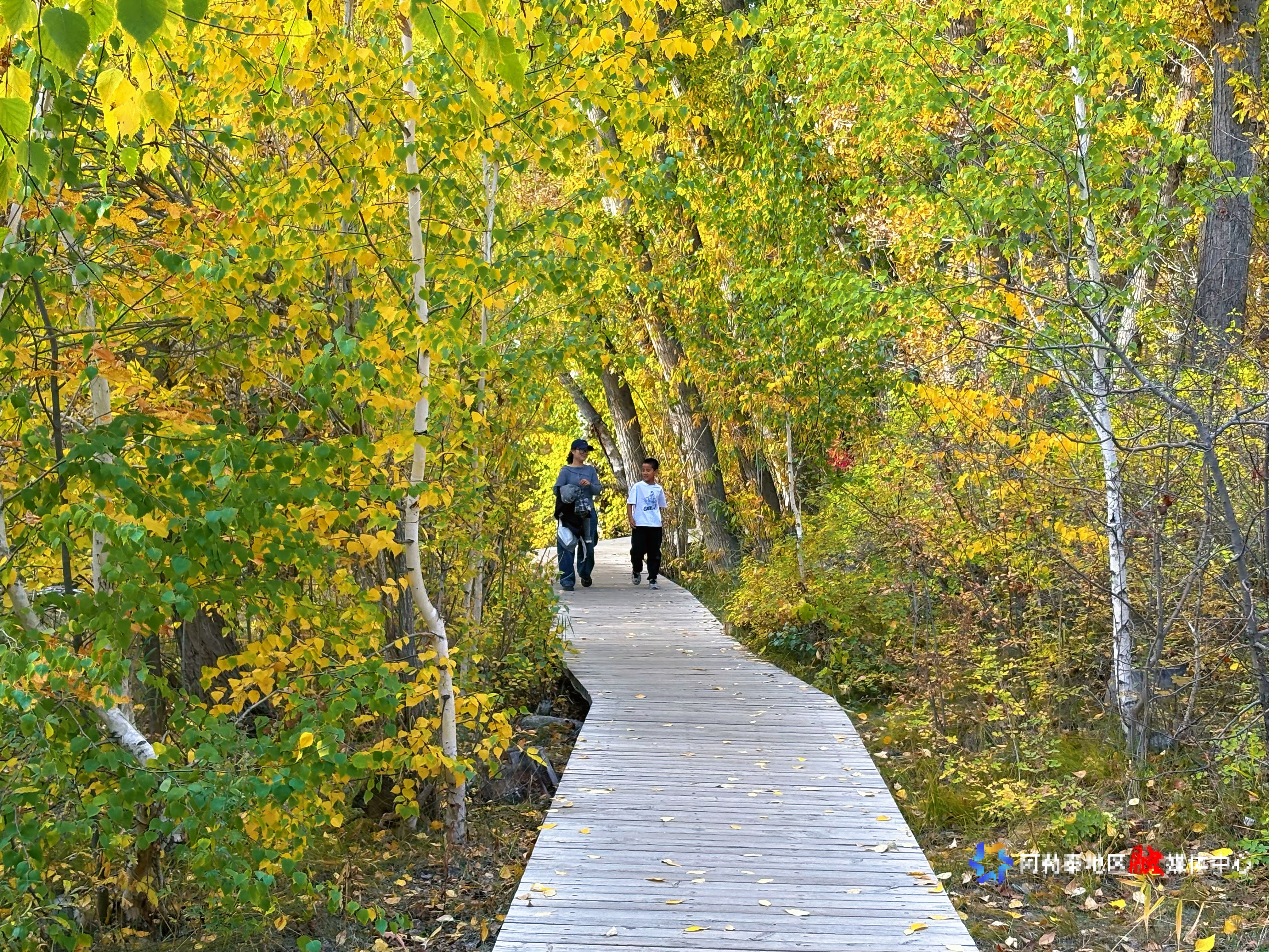 层林尽染秋意浓 阿勒泰市桦林公园醉游人