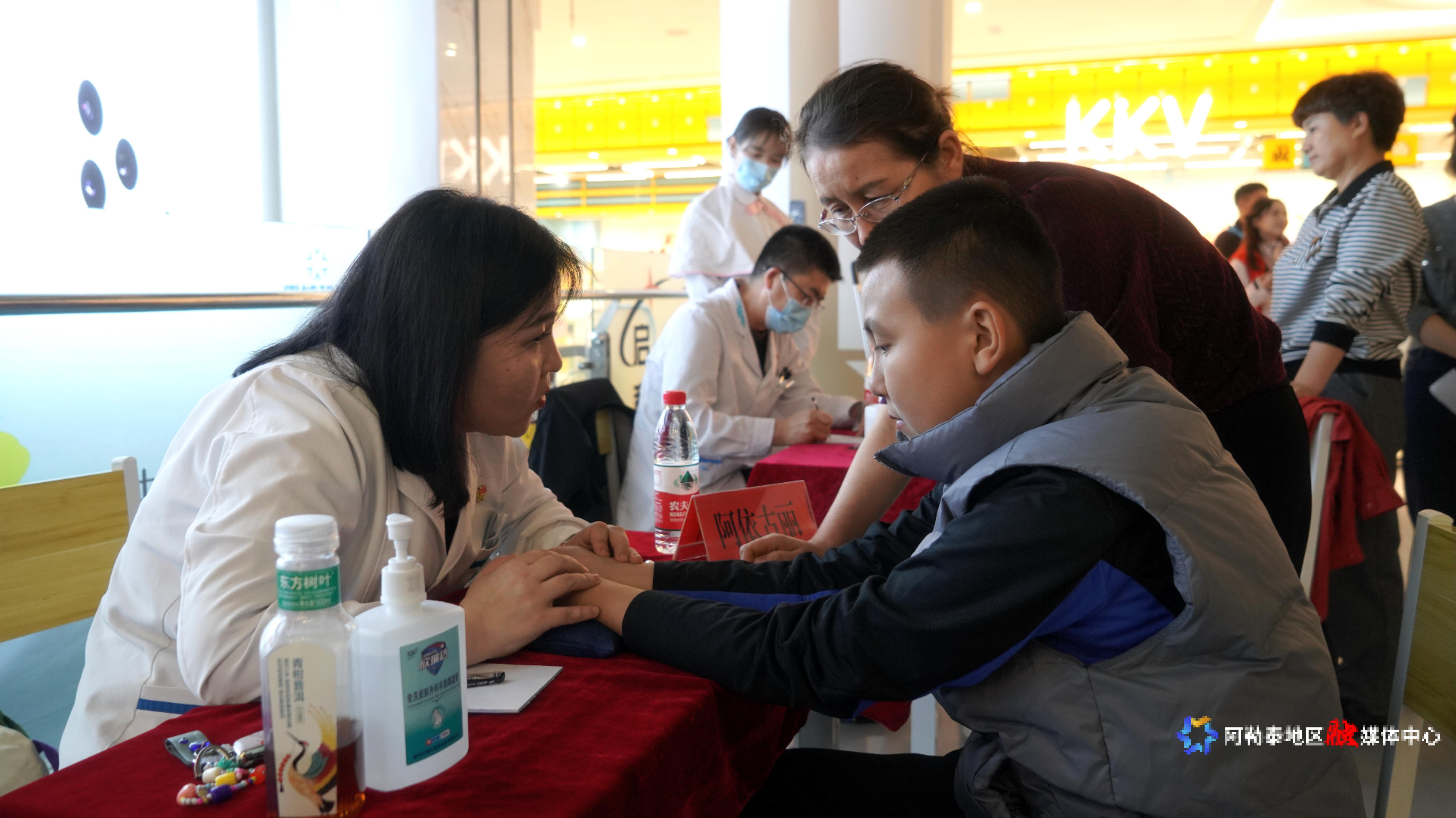 阿勒泰地区中医医院(哈萨克医医院) 医院医务人员正在开展义诊。