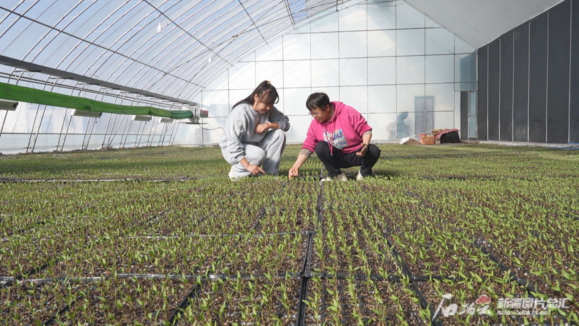 3月19日,在玛纳斯县兰州湾镇兰州湾新村石墨烯大棚内,20万株辣椒苗、西红柿苗在技术人员精心呵护下茁壮成长,绿意盎然。图/玛纳斯县融媒体中心提供