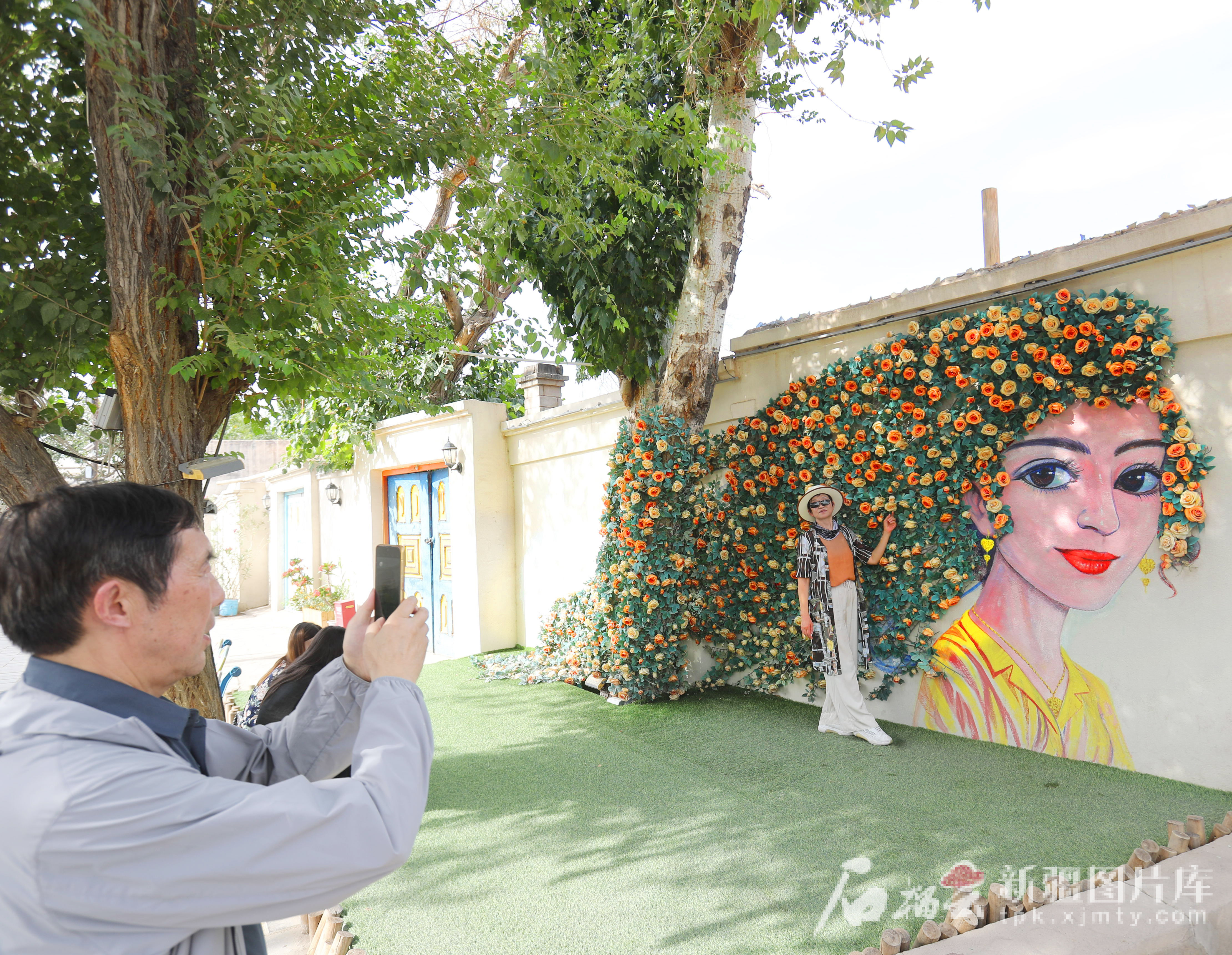 8月13日,游客在龟兹小巷拍照打卡。