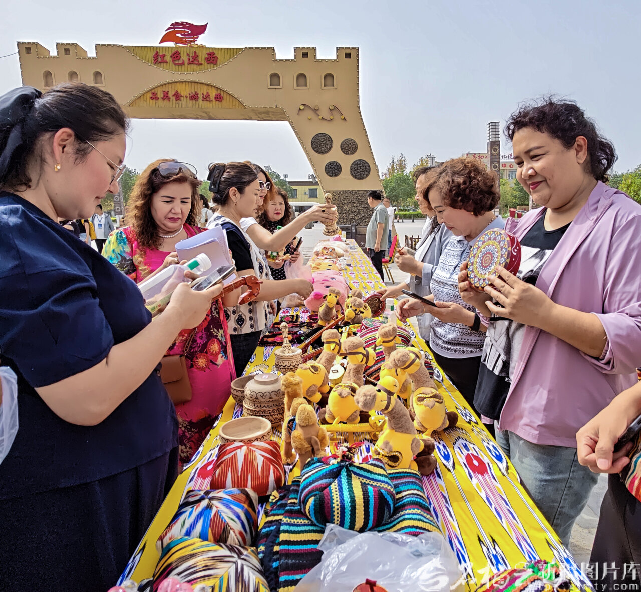 9月9日,游客在尉犁县兴平镇达西村购买旅游纪念品。