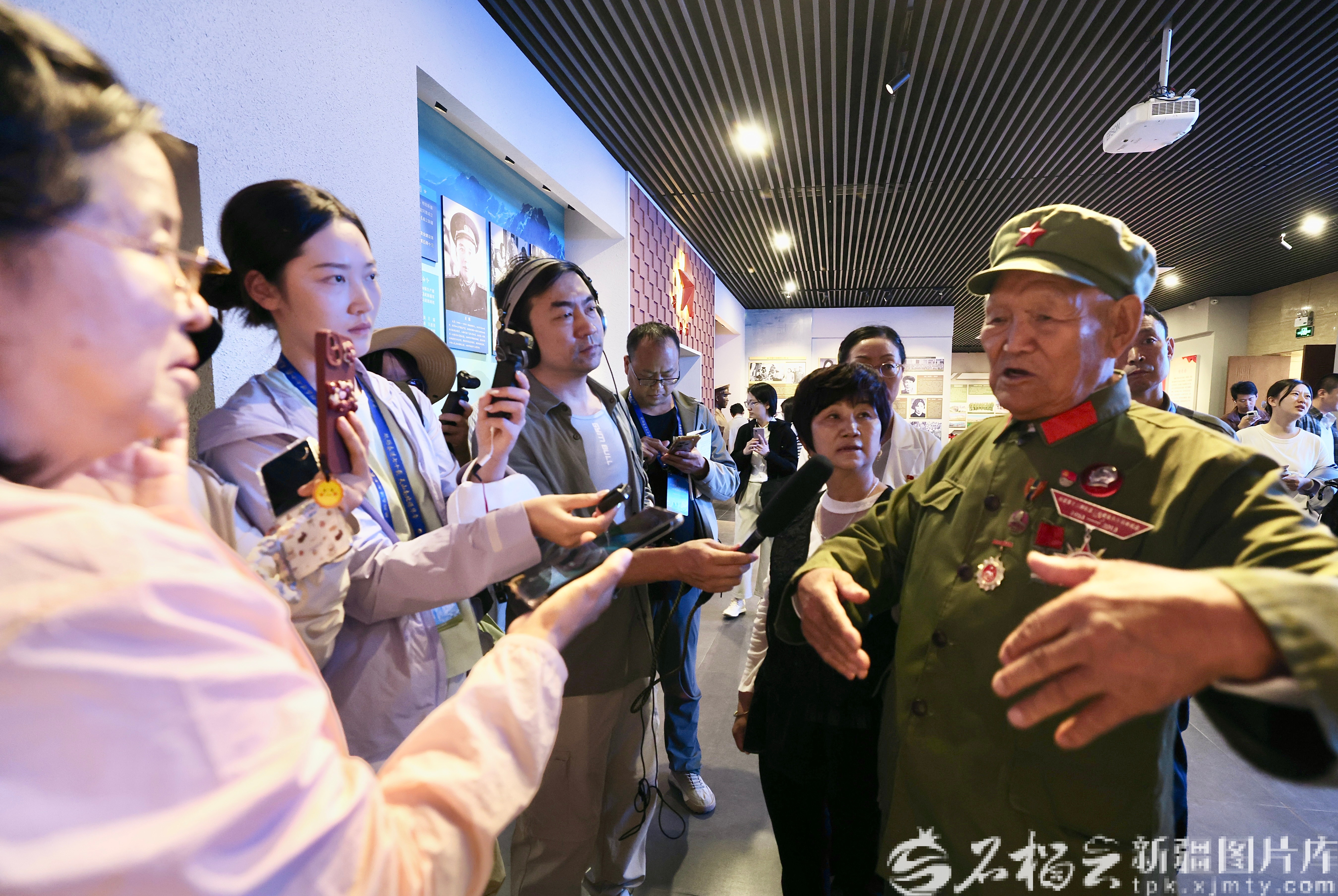 9月12日,采访团成员在红星二场红星军垦博物馆采访军垦老兵马福元。