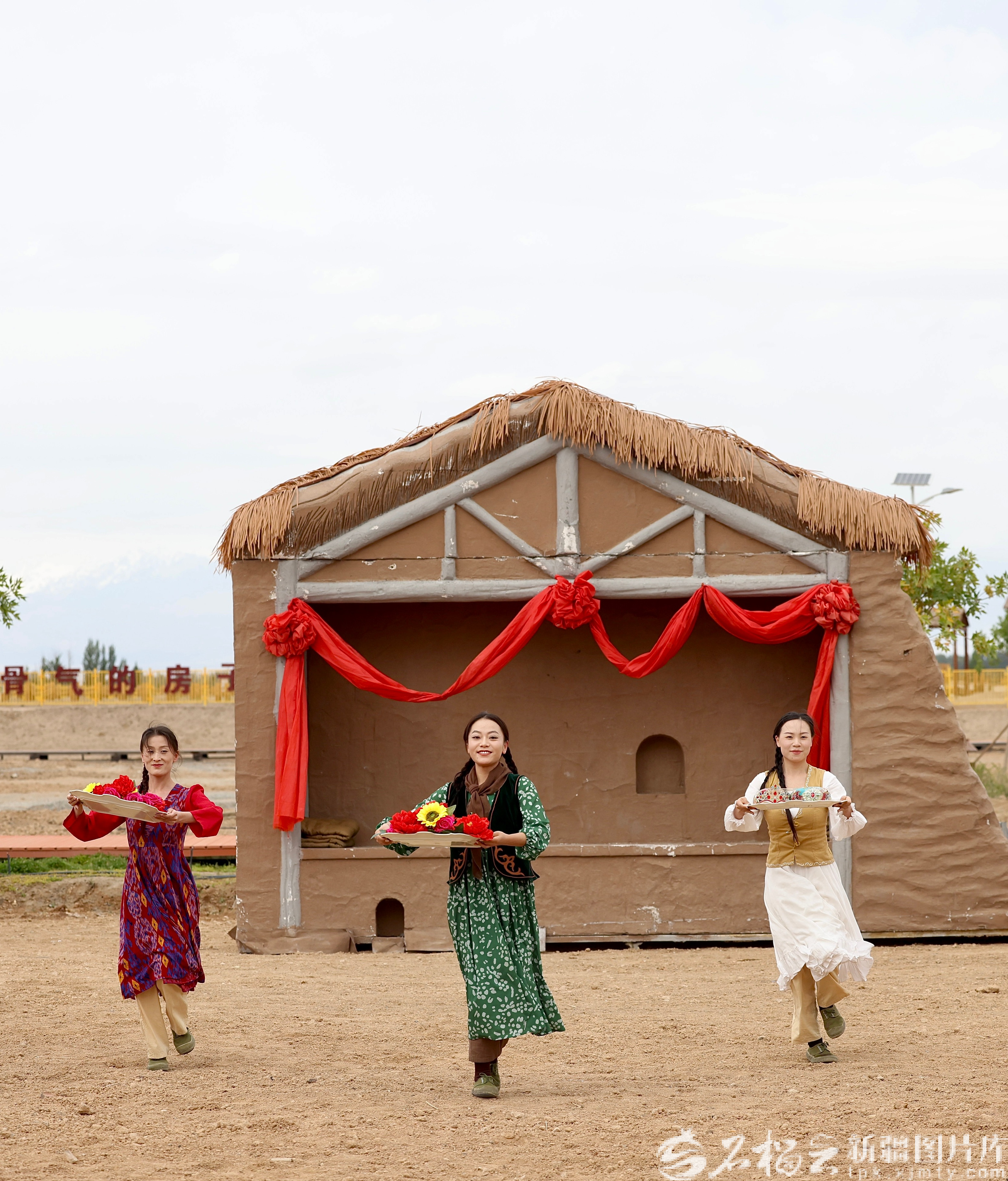 9月12日,军垦地窝子遗址纪念园演员在表演情景剧《地窝子里的婚礼》。