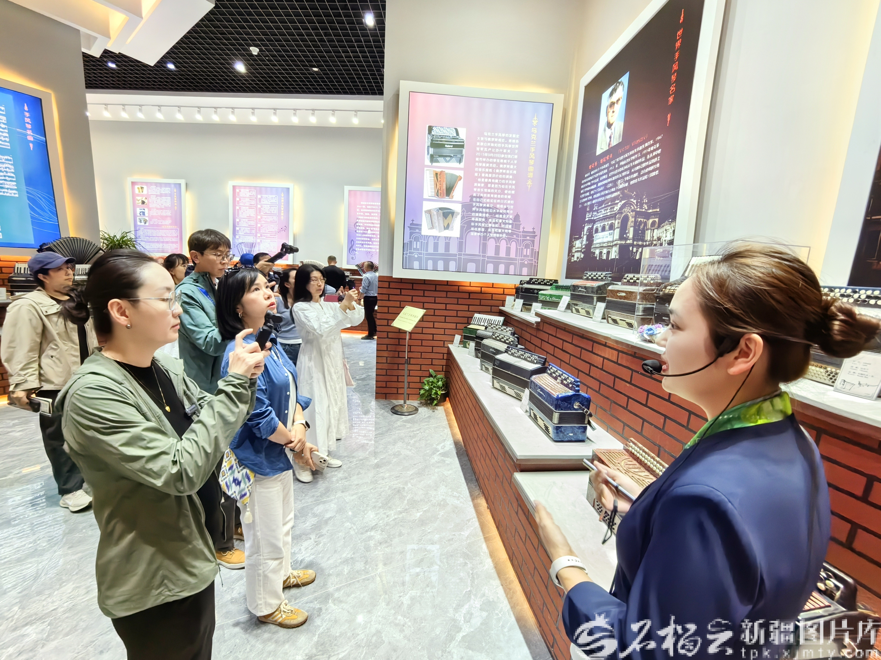 9月13日,采访团在塔城手风琴文化展馆采访。