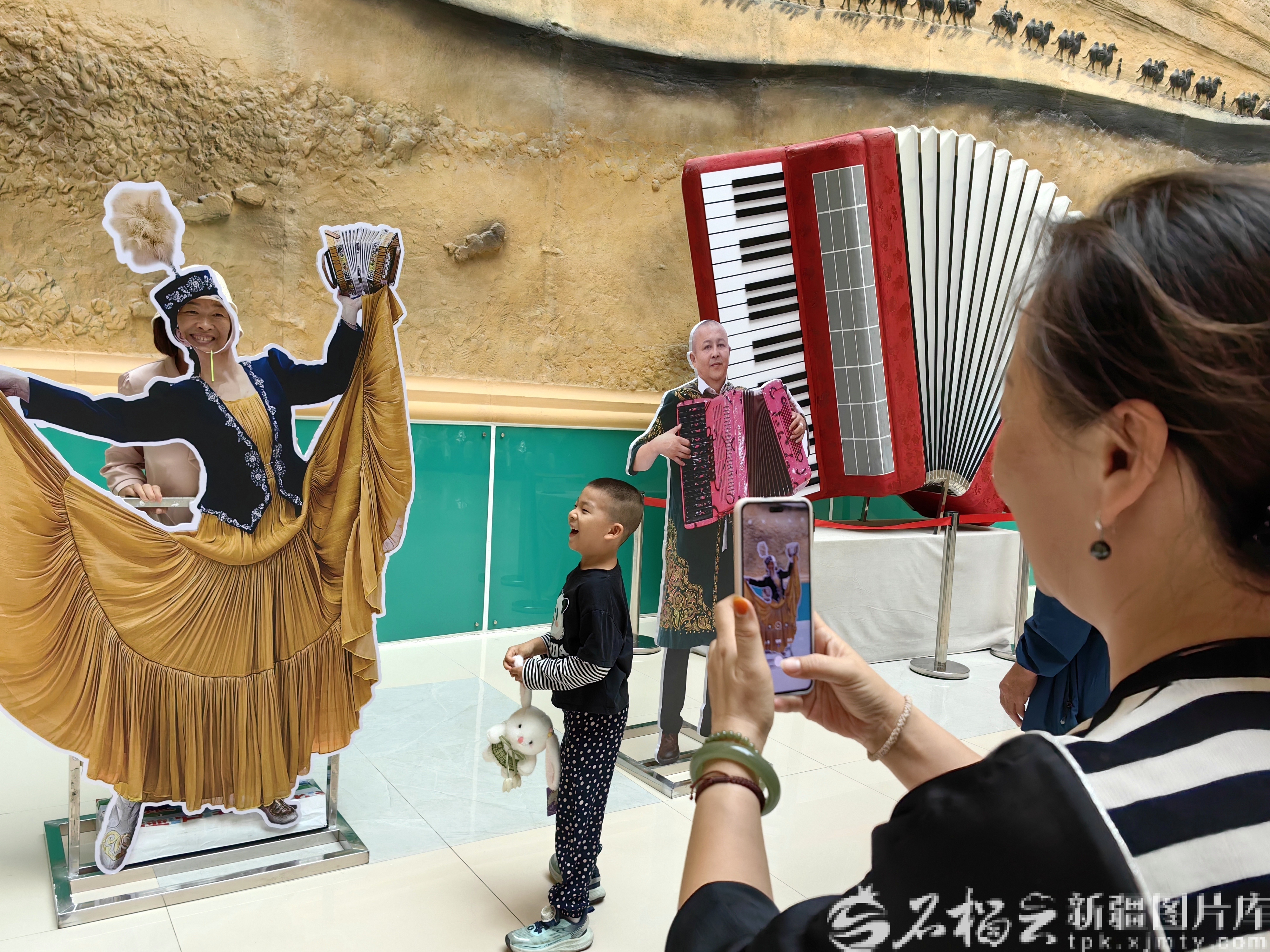 9月13日,游客在塔城手风琴文化展馆拍照打卡。