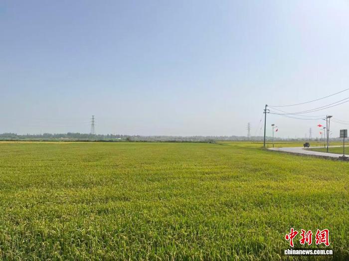 中新网新疆和田9月14日电(记者 李京泽 戎睿)秋日的新疆和田县百和镇稻香村,稻香弥漫、一派生机。这里地处塔克拉玛干沙漠南缘,绿色稻田与黄色沙海构成了一幅奇特画卷。