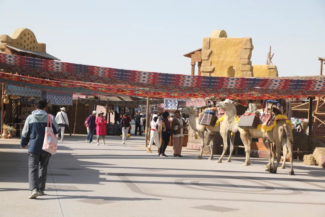 景区内,创新的NPC互动体验更让历史与现实实现了“跨时空对话”。工作人员化身丝绸之路商队成员,牵引着装扮一新的驼队穿梭在村寨中,以巡游互动的方式活化“丝路驼铃响”的历史场景。“很多游客会主动来和驼队合影,还会好奇地询问商队的历史背景、丝绸之路在新疆的文化印记,甚至咨询骆驼骑行项目。”一位驼队NPC工作人员笑着说。这场“穿越之旅”不仅为游客带来了新鲜的游览体验,更让大家在互动中了解到新疆作为古丝绸之路核心区的历史地位,感受到各族群众在长期交往交流交融中共同书写的丝路文明,增强了对“中华民族多元一体”格局的认知。