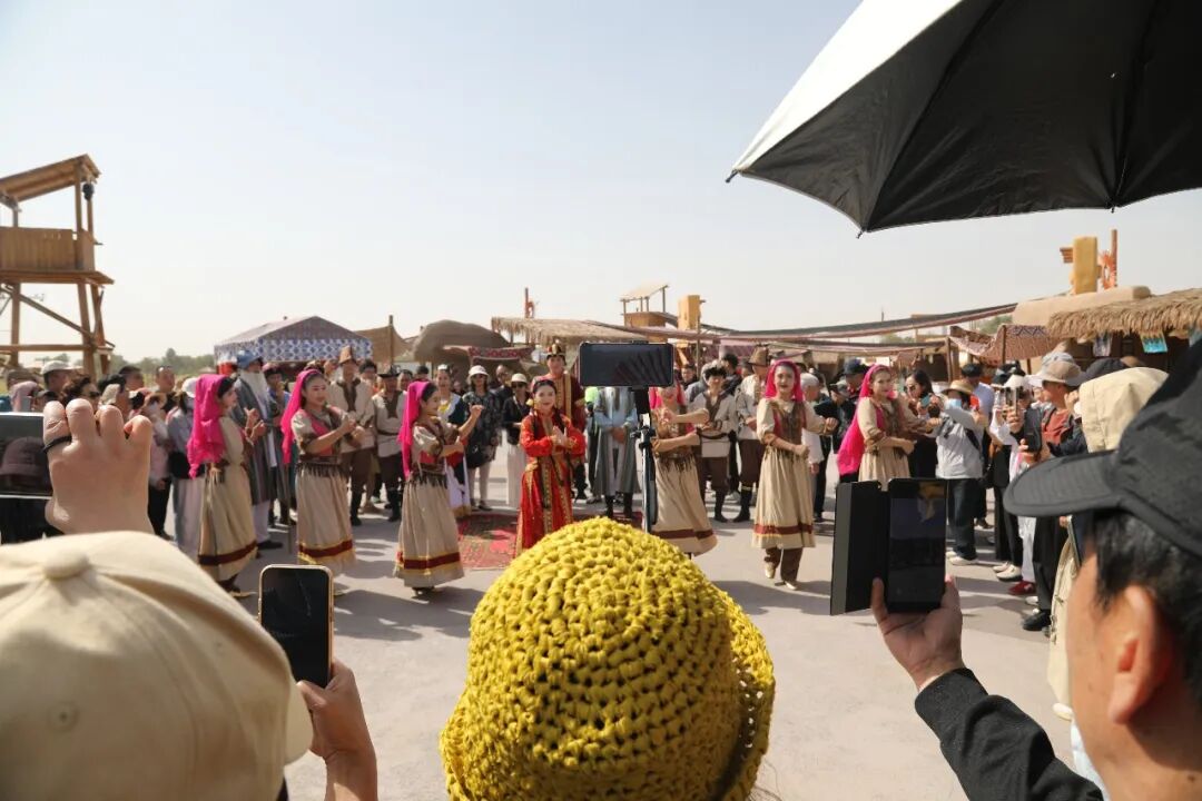 在罗布人村寨的阿不旦广场,民俗文化的魅力正以动态展演的形式生动绽放。罗布人婚礼民俗体验项目里,身着特色民族服饰的演职人员,伴着悠扬的维吾尔族音乐,完整还原了罗布人民俗婚礼的喜庆流程——“百岁老人”按剧情主持仪式,欢快的舞步踏响幸福节拍,瞬间吸引游客驻足围观。不少游客被热烈的氛围感染,纷纷加入舞蹈队伍,大家的身影在广场上同频律动,中华传统文化的包容性在此刻具象化。与此同时,国家级非物质文化遗产罗布淖尔民歌、自治区级非物质文化遗产做饭舞与狮子舞轮番上演,非遗表演、民俗快闪穿插在丝路巴扎上,既让大家在视听盛宴中感受到罗布人民俗文化,又延长了游客停留时间,游客们或举起手机拍照打卡,或录制短视频分享至社交平台,让“打卡式游览”变为“沉浸式体验”。