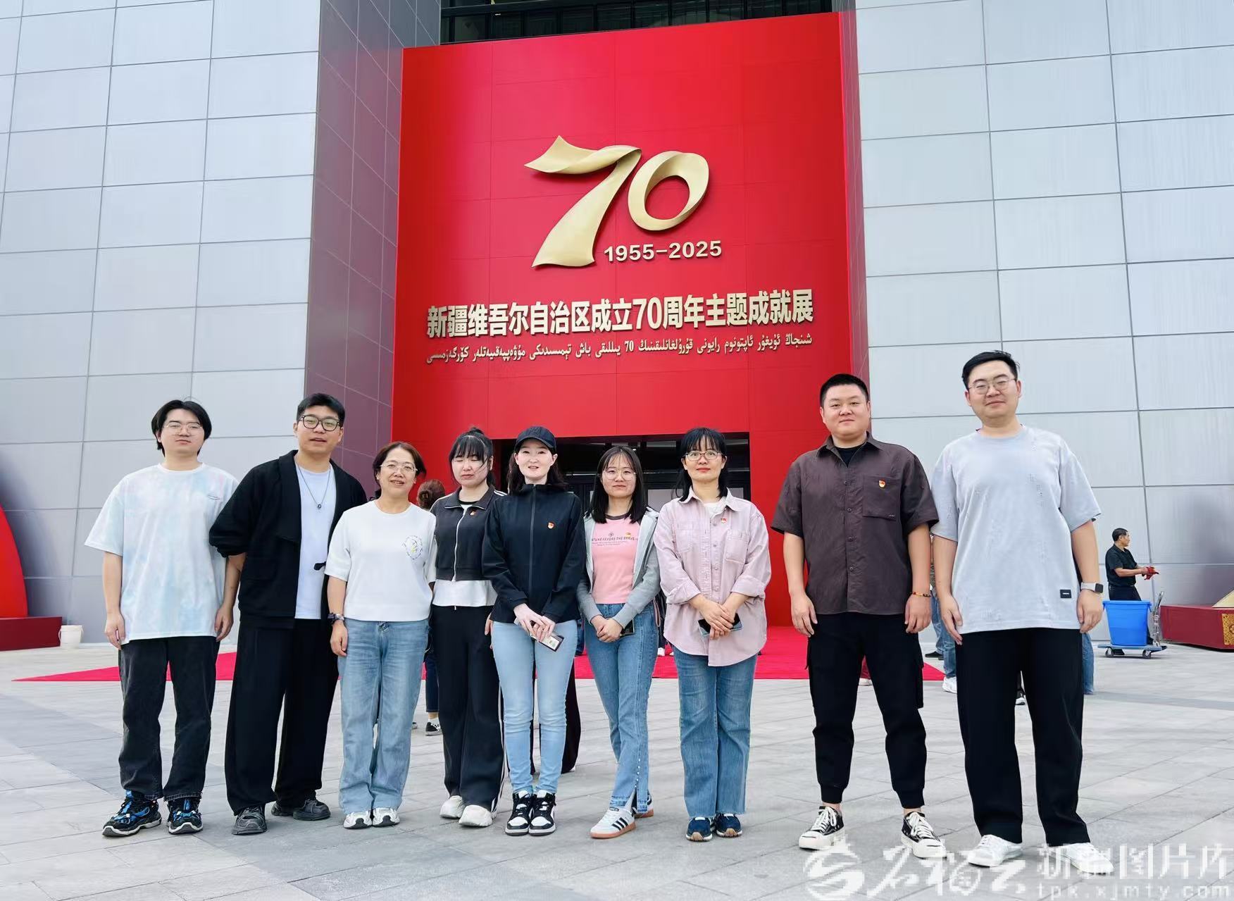 2025年9月18日,新疆日报社(集团)组织参观新疆维吾尔自治区成立70周年主题成就展,时政新闻部部分成员合照。时政新闻部供图